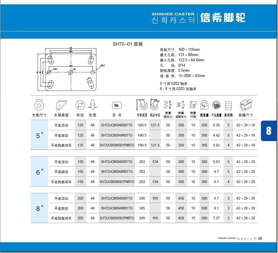 | 輪 徑: | 5寸(125mm)、6寸(150mm)、8寸(200mm) |