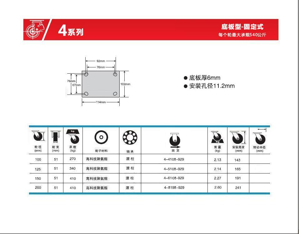 | 輪 徑: | 4寸(100mm)、5寸(125mm)、6寸(150mm)、8寸(200mm)、 |