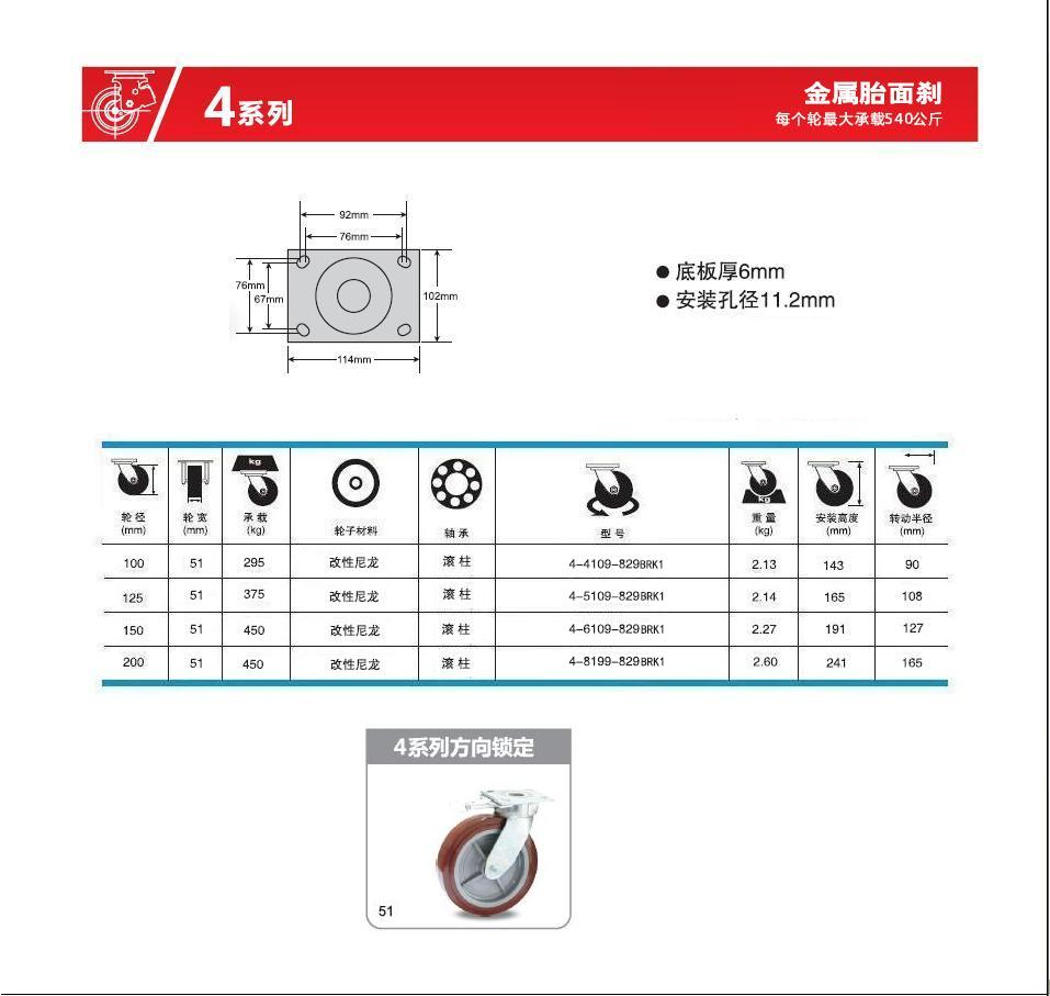 | 名 稱: | 中重型改性尼龍金屬胎面剎 |
