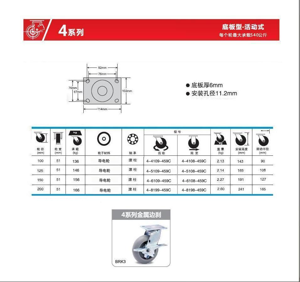 | 輪 徑: | 4寸(100mm)、5寸(125mm)、6寸(150mm)、8寸(200mm)、 |