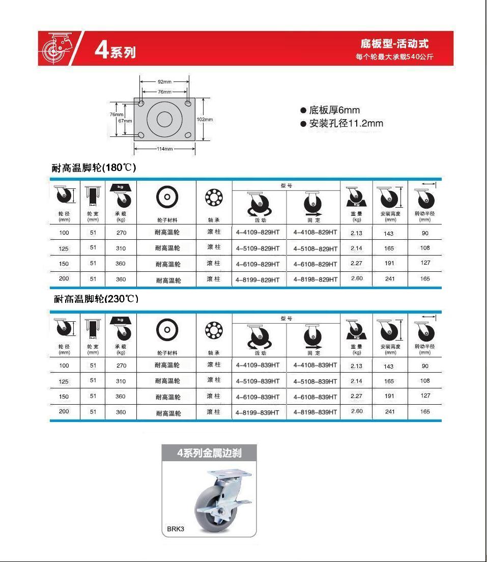 | 類 型: | 耐高溫腳輪(80-360Kg) |