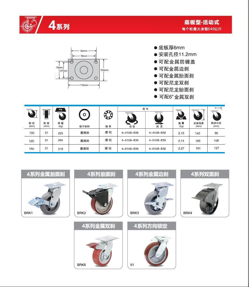 | 輪 徑: | 4寸(100mm)、5寸(125mm)、6寸(150mm)、8寸(200mm)、 |