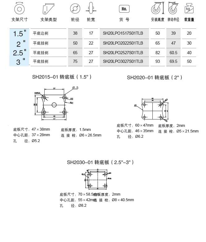 | 輪 徑: | 1.5寸(38mm)、2寸(50mm)、2.5寸(63mm)、3寸(75mm) |