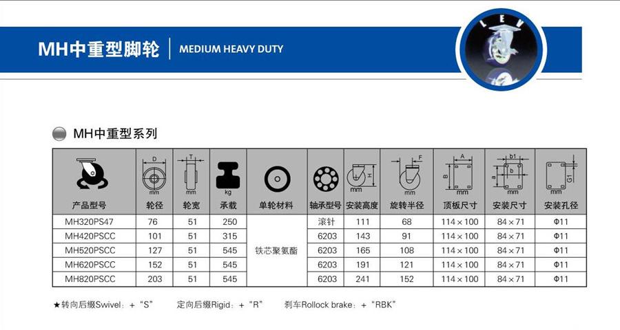 | 名 稱: | 中重型鐵芯聚氨酯萬向 |