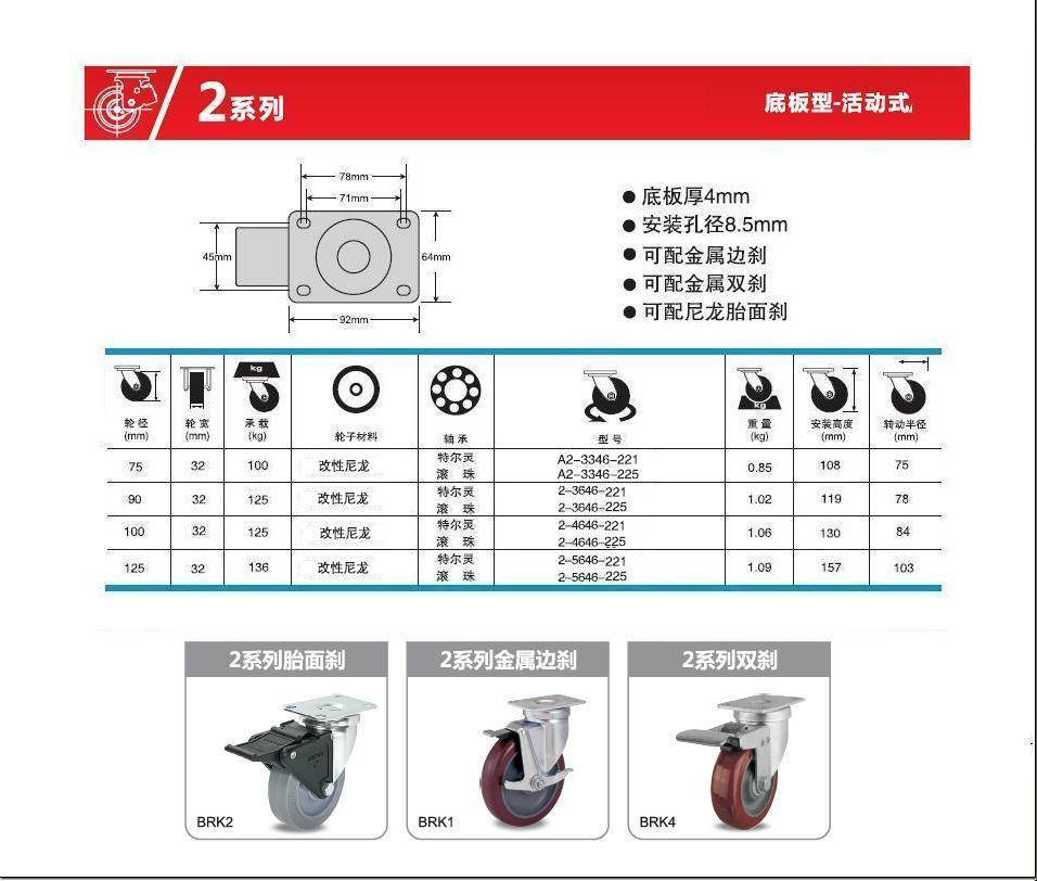 | 輪 徑: | 3寸(75mm)、3.5寸(90mm)、4寸(100mm)、5寸(125mm)、 |