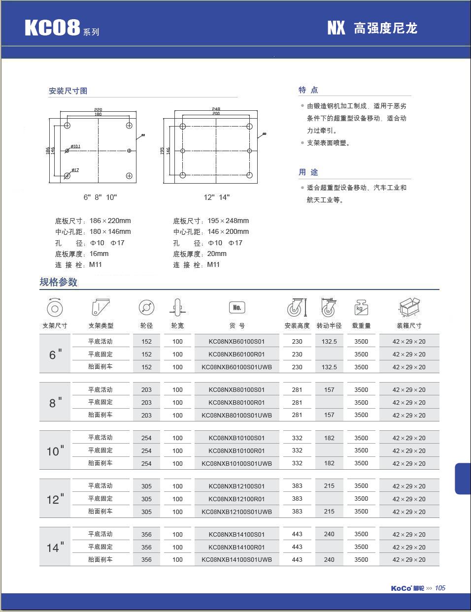 | 名 稱: | 超特重型高強尼龍萬向 |
