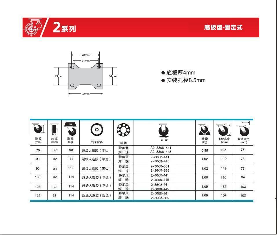 | 輪 徑: | 2.5寸65mm)、3寸(75mm)、3.5寸(90mm)、4寸(100mm)、5寸(125mm) |