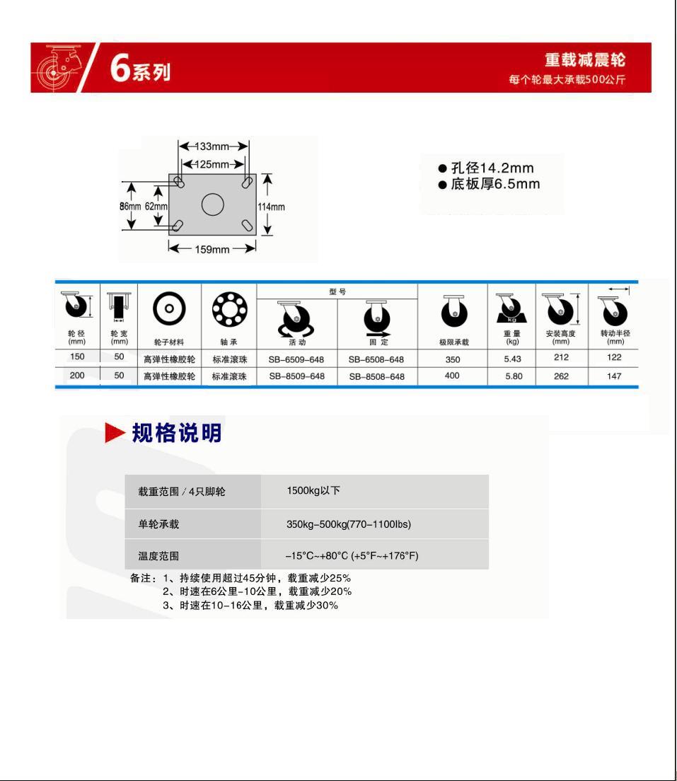 | 輪 徑: | 6寸(150mm)、8寸(200mm) |