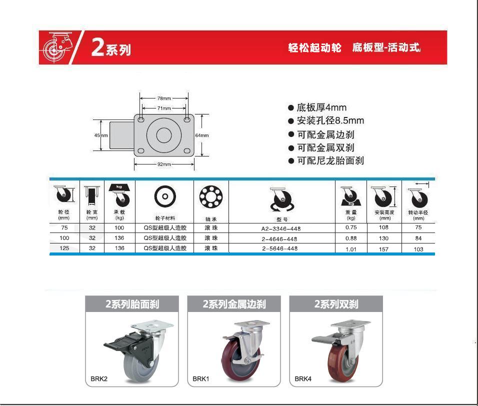 | 輪 徑: | 3寸(75mm)、4寸(100mm)、5寸(125mm)、 |
