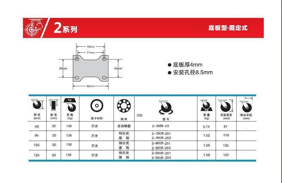 | 輪 徑: | 2.5寸65mm)、3.5寸(90mm)、4寸(100mm)、5寸(125mm)、 |